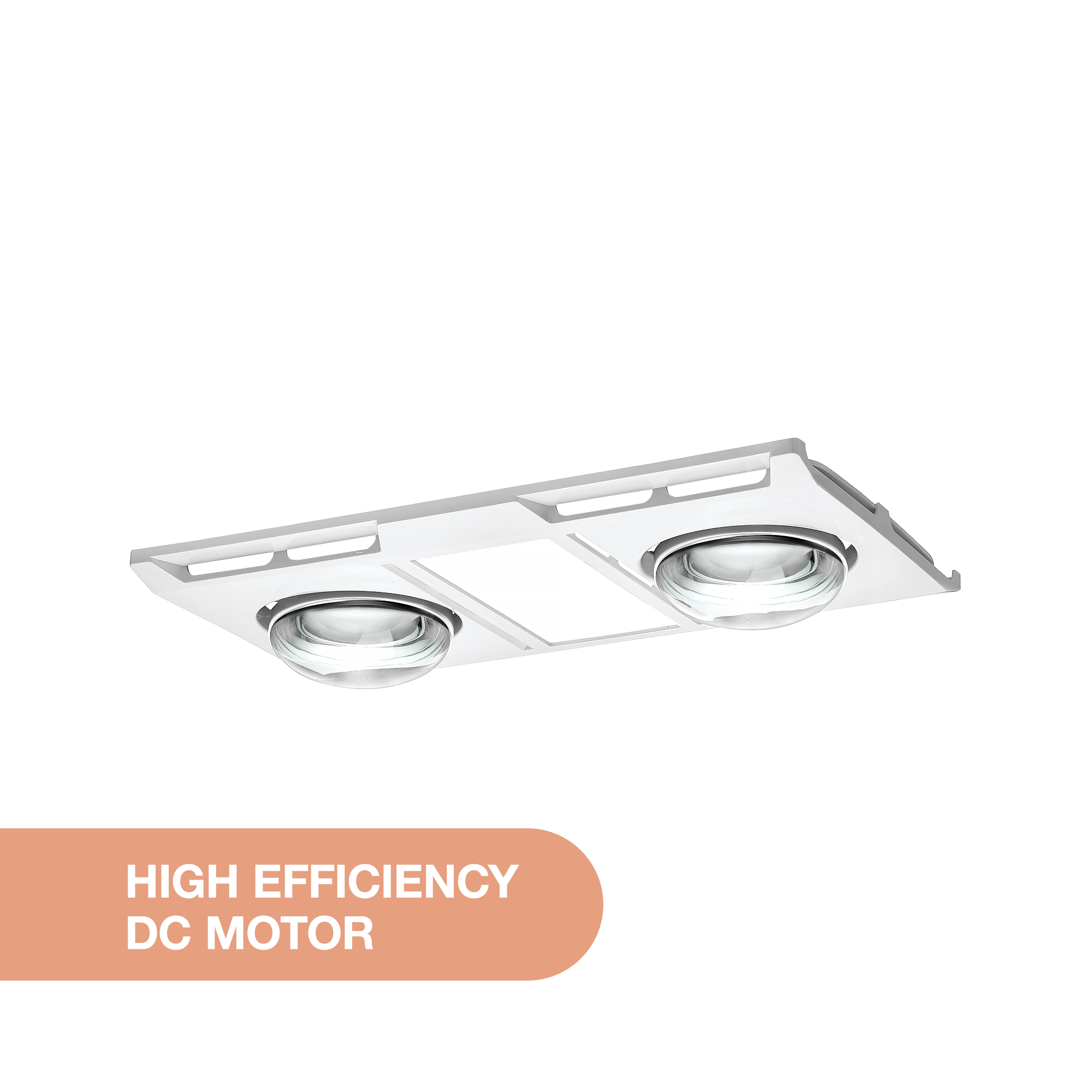 1x 3m duct, 2x ducting clips, 1x external grille, 1x 3 gang switch, 2x heat lamps, 1x LED lamp