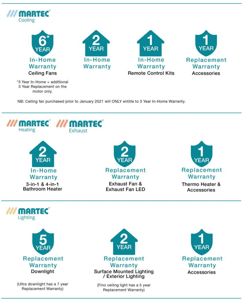 Martec products are all covered either by an In-Home Warranty or a Replacement Warranty.